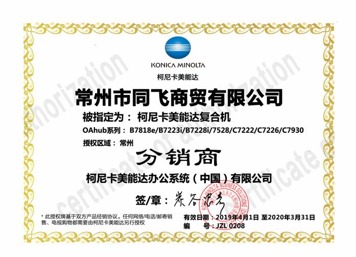 公司取得了日本京瓷復(fù)印機(jī)、打印機(jī),映美針式打印機(jī)、天威耗材、安興紙業(yè)等眾多知名品牌常州地區(qū)代理權(quán)。